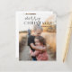 Carte de Noël photo moderne avec un design simple et minimal avec "Joyeux Noël" en typographie mignonne et amusante sur votre photo préférée. Le dos a un collage photo de trois images carrés avec votre message personnalisé.