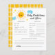 Whimsical sunshine thème baby shower prédictions bébé et carte de conseil avec un aquarelle art d'un nuage de soleil et étoiles. Les textes sont modifiables. Un jeu parfait à jouer pendant la douche et sera certainement un grand gardien! La carte demande aux invités de prédire à quoi ressemblerait le bébé.