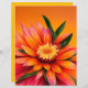 Grande fleur ressemblant au Gazania ou au Tournesol avec un feuillage coloré de teintes orange, rose et jaune.