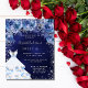 Une invitation moderne, élégante et glamour pour une fête Sweet 16, 16e anniversaire. Un arrière - plan de marine avec des étincelles de parties scintillant faux argent, une robe et des roses bleus, des fleurs. La couleur bleue de l'arrière - plan est inégale. Le nom est écrit avec un script de style moderne écrit à la main. Personnalisez et ajoutez les détails de votre fête.