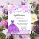 Une invitation moderne, élégante et glamour pour une fête Sweet 16, 16e anniversaire. Un arrière - plan blanc aux fleurs roses rousses, une robe violette. Le nom est écrit avec un script de style moderne écrit à la main. Personnalisez et ajoutez les détails de votre fête. 1 feuille = 1 invite imprimé bord à bord.