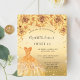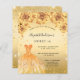 Une invitation moderne, élégante et glamour pour une fête Sweet 16, 16e anniversaire. Un arrière - plan faux or avec de la poussière de parties scintillant faux or, une robe et des roses, des fleurs. Le nom est écrit avec un script de style moderne écrit à la main. Personnalisez et ajoutez les détails de votre fête.