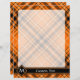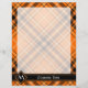 Échantillon de tartan moderne orange et noir halloween. Texte et monogramme personnalisés.