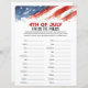 Apportez des rires, de l'excitation et du plaisir patriotique à votre fête de l'Indépendance avec ce jeu de 4 juillet ! Conçu en format US Letter pour une impression facile, ce jeu festif est parfait pour les réunions de famille, les barbecues et les feux d'artifice.
