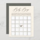 Elégante signature calligraphie "Baby Bingo" graphique, feuille de jeu de baby shower. Boho-chic baleine, lune et étoiles illustrées avec coordination rustique fond gris.