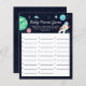 Mignonne thème de l'espace baby shower carte de jeu de nom de bébé avec illustrations de planètes, astronaute, étoiles. Les textes sont modifiables. Un jeu parfait à jouer sous la douche. Il demande aux clients d'écrire des noms de bébés qui commencent par chaque alphabet. Celui qui finit tous les alphabets gagne d'abord !