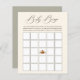 Elégante signature calligraphie "Baby Bingo" graphique, feuille de jeu de baby shower. Ours, lunes, planète et étoiles illustrés de style Boho-chic, coordonnés avec un support rustique couleur sauge.