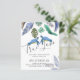 Tortues de mer bleu, turquoise et jaune avec des feuilles tropicaux font partie de cet océan, la vie de plage mariage. Les champs de modèle texte des deux côtés vous permettent d'ajouter tous vos détails supplémentaires, y compris rsvp, registre des cadeaux, détails de réception, itinéraires, etc.