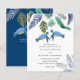 Tortues de mer bleu, turquoise et jaune avec des feuilles tropicaux font partie de cet océan, la vie de plage mariage. Les champs de modèle texte des deux côtés vous permettent d'ajouter tous vos détails supplémentaires, y compris rsvp, registre des cadeaux, détails de réception, itinéraires, etc.