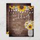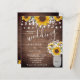 Ce design mariage abordable comprend un vase en bocal de mason rempli de tournesols et de respiration pour bébé sur un arrière - plan en bois rustique avec des lampes à cordes. Cliquez sur le bouton personnaliser pour plus de flexibilité dans la modification du texte. Des variantes de cette conception, différents types de papier, ainsi que des produits de coordination sont disponibles dans notre boutique, zazzle.com/store/doodlelulu. Contactez-nous si vous avez besoin que cette conception s'applique à un produit spécifique pour créer votre propre article de correspondance unique! Merci tellement pour voir un DoodleLulu par 2 june conception de bogues!