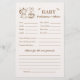 Créez un doux saké pour les parents à être avec cette carte de prédictions et conseils pour bébés. Doté d'une tasse de café confortable avec du coeur et de la bouilloire mocha dans un style rustique simple, cette carte invitation les invités à deviner la date de naissance du bébé, le poids et d'autres détails amusants, puis partager leurs meilleurs conseils parentaux. Parfait pour un baby shower Café Bébé ou le brunch Baby Is Brewing, ces cartes font une activité significative pendant la douche et un souvenir précieux pour la famille après la fête.