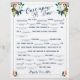 Jeu "Once Upon A Time" avec les invites en blanc et "clé de réponse" à l'arrière Les magnifiques fleurs peintes sont par Create the Cut. Retrouvez-les sur Creative Market https://crmrkt.com/7WdAX, Etsy https://www.etsy.com/shop/CreateTheCut et www.createthecut.com