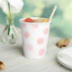 Papierbecher mit rosa und weißem Punkt, mit Deckel