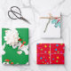 Papierblatt Set Dinosaurier in Weihnachtsmannmütze Geschenkpapier Set