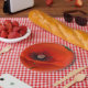 Diese Papiertafel ist mit einem hellroten Mohn ausgestattet und eignet sich hervorragend für Party und Picknicks!