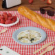 Party Papierplatte in Blue Fog Farbe mit einem schönen Elfenbeindruck-Design. Passen Sie diese Platte an oder kaufen Sie wie besetzt. Archivbild freepik.com