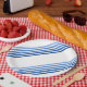Papierplatte - Farbtöne der blauen diagonalen Stre Pappteller