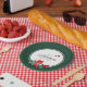 Genießen Sie köstliche Speisen in unseren Tellern zum Grünbuch und zum roten Granatapfelpapier aus der Blume Pomegranat mit einer botanischen Aquarelldarstellung von frisch gepflückten Granatapfelaten und Blume aus dem Obstgarten! Ideal für Ihr Party im Garten, Park, für Ihre Picknick und das ganze Jahr über!