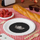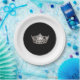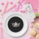 Papierplatte aus Party in Schwarz-Weiß-Combo-Farbgebung mit Silberseitenkronenprint in der Mitte. Fügen Sie Ihren personalisierten Text, falls gewünscht, hinzu oder ändern Sie die Farbe der äußeren Felge. Passen Sie diese Platte an oder kaufen Sie wie gezeigt.