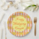 Dekorieren Sie Ihren Erntedank-Tisch mit passenden Geschirr, orange und goldgelb kariert. Der weiße Hintergrund kann beliebig personalisiert sein. Text kann personalisiert sein, oder Text kann entfernt werden.