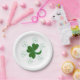 Kleeblätter. Grosses, dunkelgrünes Kleeblatt mit hellgrüner Kontur, zentriert sich zwischen den Konturen von sechs hellgrünen Kleeblättern.