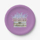 Hübsche Papierplatte lila mit blauen und rosa Blume in einem Imitat Holzbehälter. Es gibt Servietten, die passen. Dank Creative Fabrica für einige der Elemente in der Gestaltung.