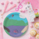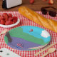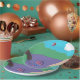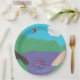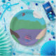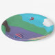 Diese Teller sind mit einer Darstellung eines blauen Sees, umgeben von Hügeln, und Luftballons im blauen Himmel gestaltet.