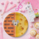 Ein Teller für eine Matinee, für ein familiäres Café. Die Maus isst Käse und sogar Steine