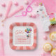 Eine schöne rosa und weiße Papiertüte personalisiert mit dem Namen eines kleinen Mädchens, perfekt für einen unvergesslichen Babyduschabend.