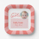 Eine schöne rosa und weiße Papiertüte personalisiert mit dem Namen eines kleinen Mädchens, perfekt für einen unvergesslichen Babyduschabend.