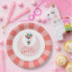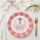 Eine schöne rosa und weiße Papiertüte personalisiert mit dem Namen eines kleinen Mädchens, perfekt für einen unvergesslichen Babyduschabend.