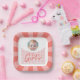 Eine schöne rosa und weiße Papiertüte personalisiert mit dem Namen eines kleinen Mädchens, perfekt für einen unvergesslichen Babyduschabend.