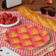 Lachs mit sonnenbefleckter orangefarbener Kunst