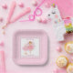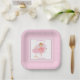 Ballerina, rosa Blume, weiße Polka-Punkte anpassbare Papierplatte.