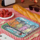 Inspiriert von Ferien in Wales, St. Ives und anderen schönen Küstenstädten in Großbritannien. Eine farbenfrohe Hafenlandschaft mit einem Boot, das auf dem Meer spielt. Das Schiff trägt den walisischen Namen "Awel", was Brise bedeutet.