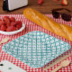 Papiertafel - Quadrate der grünen Interwoven-Quadr Pappteller