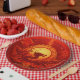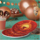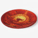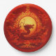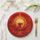 Stellen Sie sich eine runde Papiertüte vor, die in einem kräftigen, lebendigen Rot gefärbt ist und sofort Aufmerksamkeit erregt. Die Platte ist mit aufwändigen Drachendesigns in Gold und Schwarz geschmückt und wirbelt majestätisch über die Oberfläche. Jeder Drache ist detailliert mit skalierten Körpern, scharfen Klauen und heftigen Augen, mit Rauch- und Flammenklumpen, die sie subtil umkreisen und der Szene Bewegung und Leben hinzufügen. Die Kanten der Platte können einen goldenen Zierrahmen haben, der den gesamten Look in einem eleganten, orientalisch inspirierten Stil verbindet. Der Gesamteindruck ist kühn, traditionell und festlich, perfekt für eine thematische Feier.