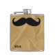 Fun Flasche in Grafik eines braunen Papiertüte Look, mit einem großen schwarzen Schnurrbart, auf der Vorderseite. Schwarzer Text im Schablonenstil, unten vorne, ist bereit zu personalisieren. Eine tolle Geschenkidee für jeden Typ und besonders gut als Hochzeitsgeschenk für Trauzeuge.