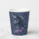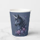 Dark Unicorn Portrait in einem Round Frame - Magische Fantasy Artwork mit Rose & Herz. Dieses künstlerische Einhornporträt zeigt ein magisches, dunkles Einhorn mit einem silbernen Horn, umgeben von zarten lila und rosa Rosen. Kleine lila Herzen schweben träumen um das majestätische mythische Wesen. Der runde Rahmen ist mit dunkelblauen Blume und Blätter geschmückt und verleiht dem Motiv ein romantisches, mystisches Ambiente. Der weiche blaue Hintergrund unterstreicht die traumhafte und märchenhafte Stimmung des Kunstwerks. Ideal für Fantasy-Fans, Romantiker und alle, die magische Einhornkunst Lieben.