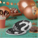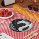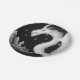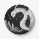 PapierTeller, der das ursprüngliche wütende Planetenzeichnen eines Fliegendrachen fliegt über ein Schloss und glänzenden Sterne kennzeichnet. Dieses Stück ist ursprünglich auf schwarzem Gewebe handgemalt.