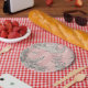 Rosa und Taupe PapierTeller Toile De Jouy.