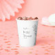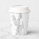 Papier-Cups für eine Brautdusche in einem sanften, eleganten Stil mit einer bezaubernden grafischen Abbildung der Lilie des Tales.