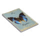 Ein wunderschönes Shabby Chic-Bild eines blauen Schmetterlings auf blauem Hintergrund mit Vintagem französischem Schriftzeichen. ©Wickedlynice