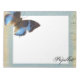 Ein wunderschönes Shabby Chic-Bild eines blauen Schmetterlings auf blauem Hintergrund mit Vintagem französischem Schriftzeichen. ©Wickedlynice