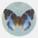Ein wunderschönes Shabby Chic-Bild eines blauen Schmetterlings auf blauem Hintergrund mit Vintagem französischem Schriftzeichen. ©Wickedlynice
