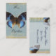 Ein wunderschönes Shabby Chic-Bild eines blauen Schmetterlings auf blauem Hintergrund mit Vintagem französischem Schriftzeichen. ©Wickedlynice
