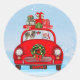 Papillon Dog in Auto mit dem Weihnachtsmann Runder Aufkleber