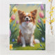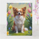Papillon Dog Spring Flowers Malerei Karte