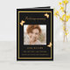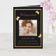 Un programme élégant de 4 pages. Un fond noir, un cadre doré faux, et un espace pour votre photo sur la couverture. Décoré de 3 papillons dorés. Personnalisez et ajoutez le nom, les dates et votre texte. Texte doré.