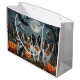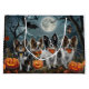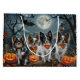 Entfesseln Sie den unheimlichen Geist mit diesem unheimlichen Halloween-Design, das eine Hundepackung unter einem dunklen, mondbeleuchteten Himmel bietet, umgeben von fliegenden Fledermäusen und glühenden Kürbissen. Ideal für diejenigen, die mit ihren wütenden Freunden eine Touch voller Furcht Liebe haben!